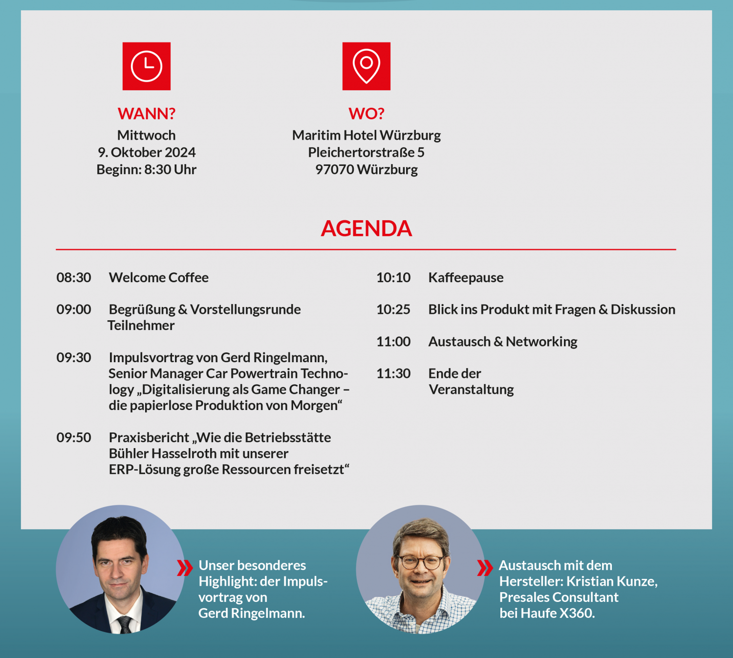 Nutzen Sie diese Gelegenheit zum Austausch mit Experten und Gleichgesinnten und erleben Sie, wie zukunftsweisende Technologie Ihr Unternehmen erfolgreich in die Zukunft führen kann.